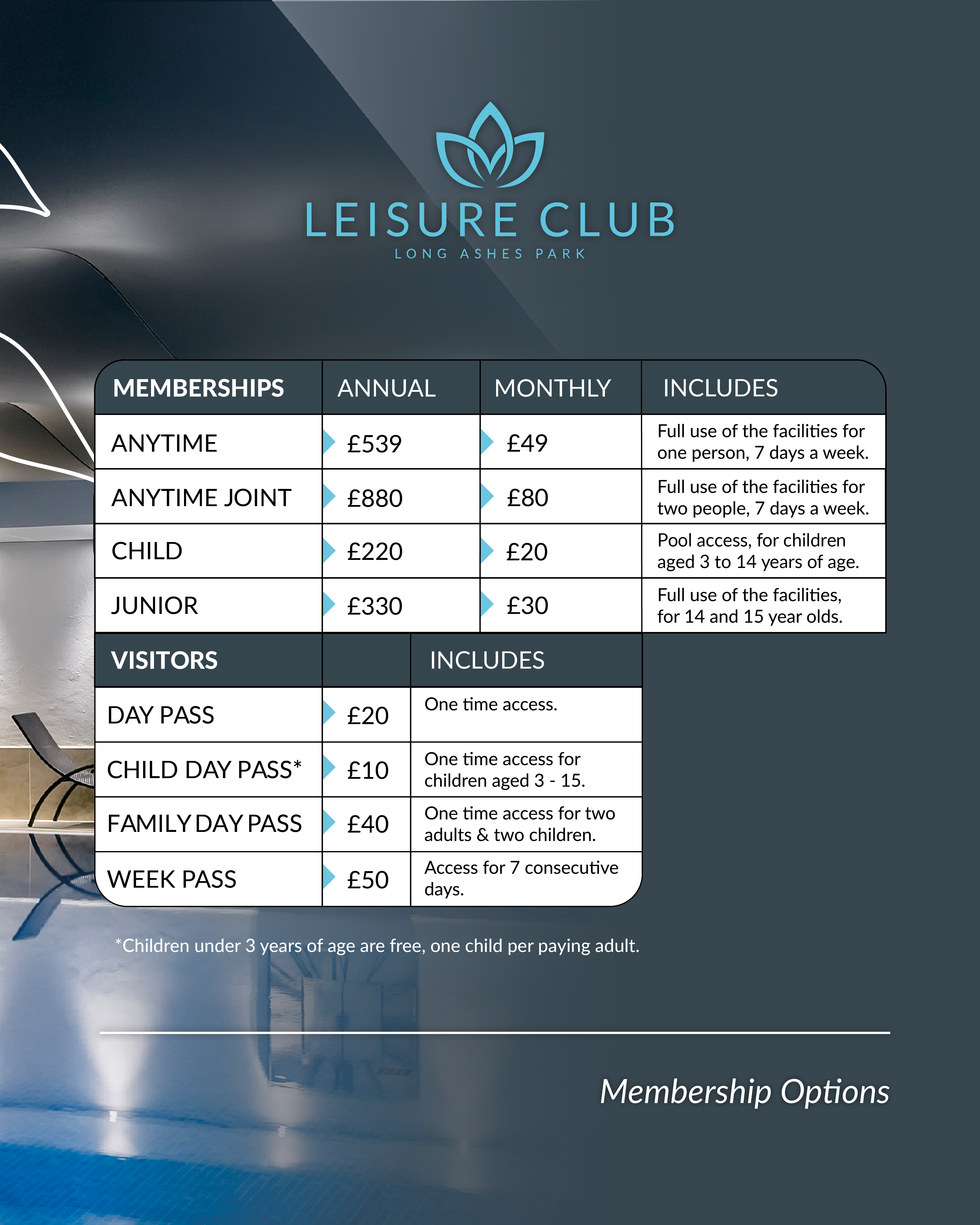Terms and Conditions of membership can be obtained from the Leisure Club reception