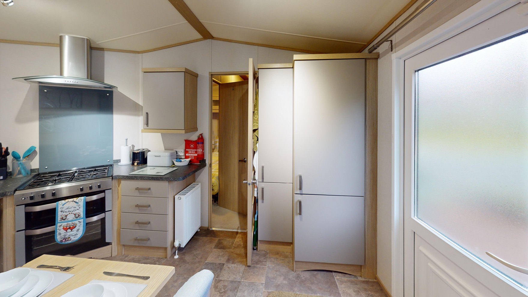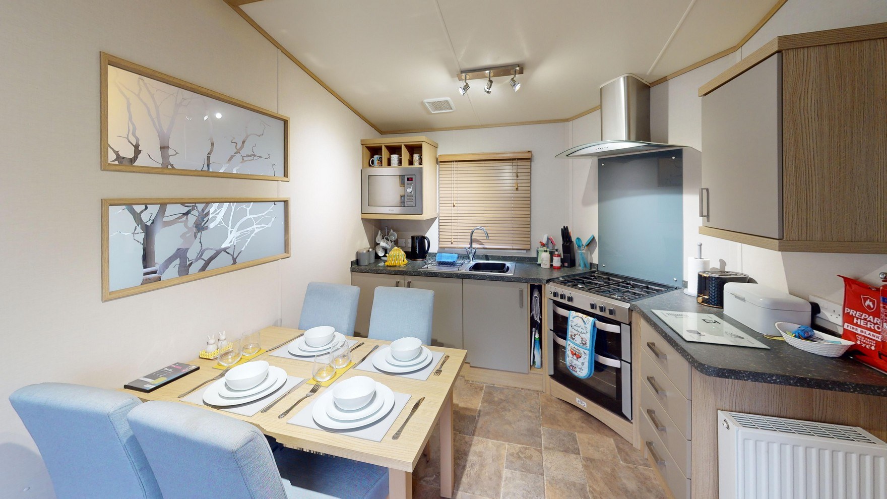 Adjacent to the kitchen, the dining area features a stylish free-standing dining set with four chairs—a lovely spot to gather for family meals or a leisurely breakfast before exploring the Dales.